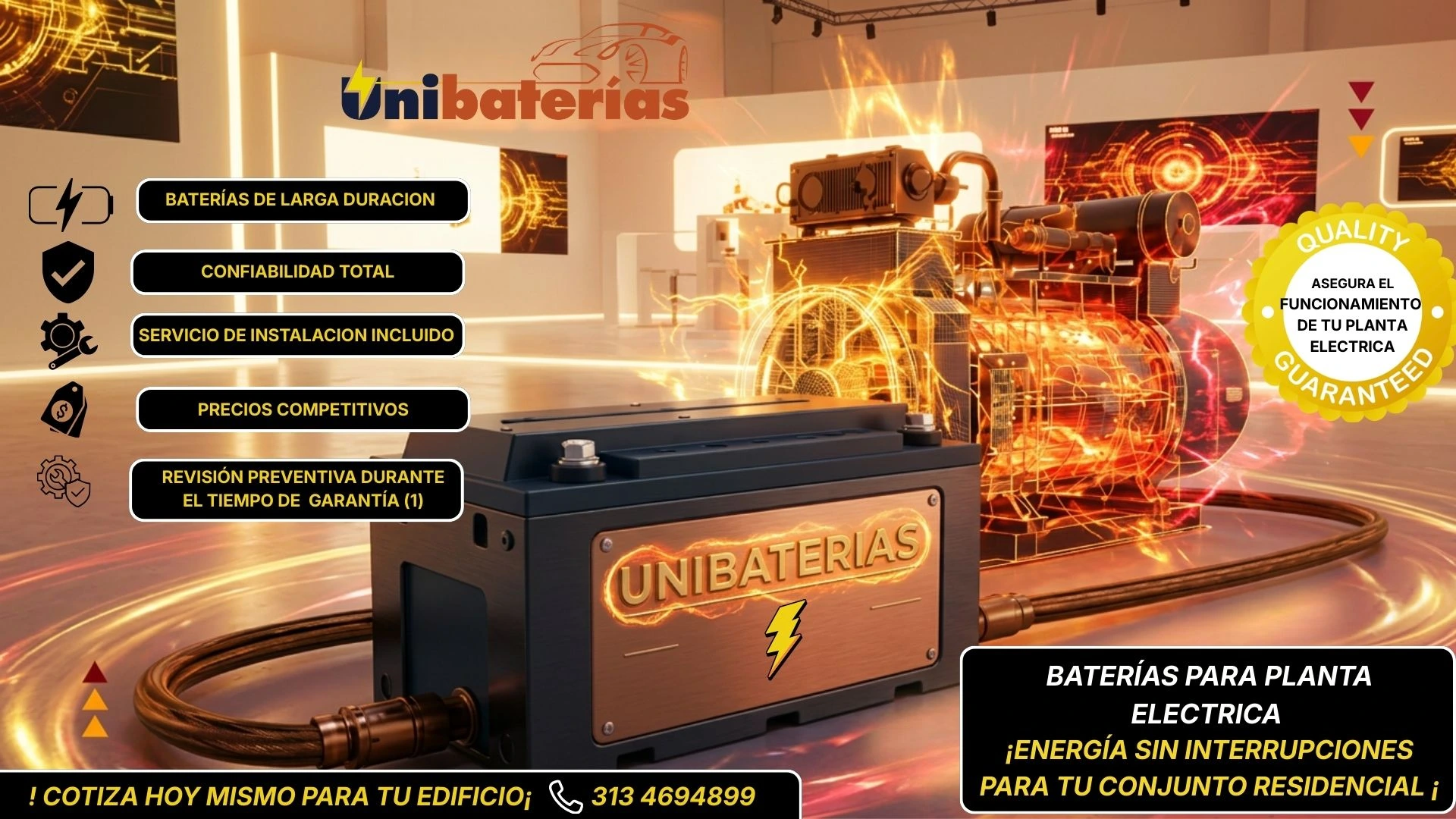 Unibaterias es una empresa dedicada a la asesoría y venta de baterías para carros, camionetas, camiones y plantas eléctricas, contamos con marcas de baterías reconocidas a nivel nacional.