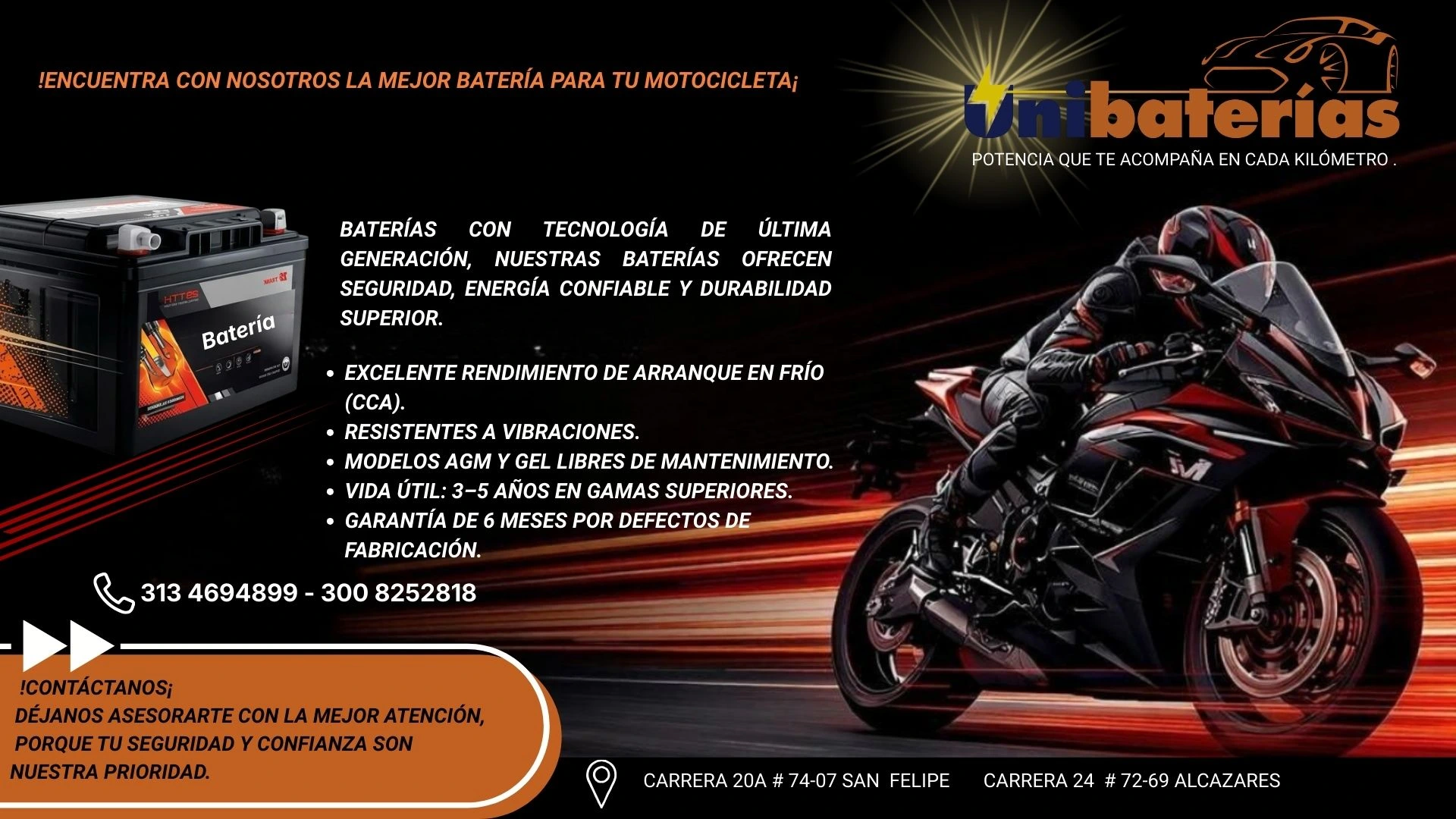 Contacta a Unibaterias por teléfono, WhatsApp, o sitio web